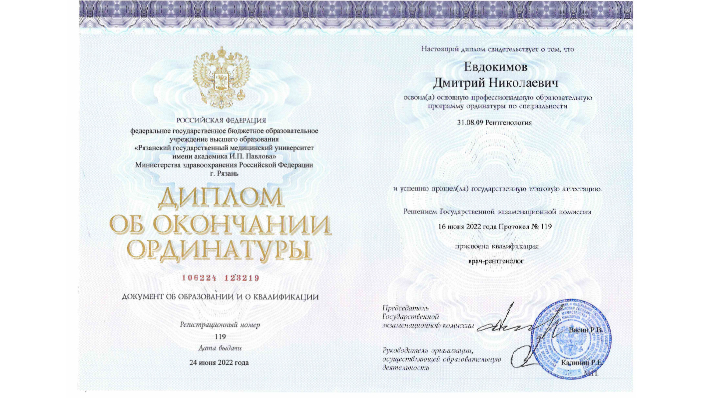 Аккредитован по специальности: рентгенология до 12.07.2027
