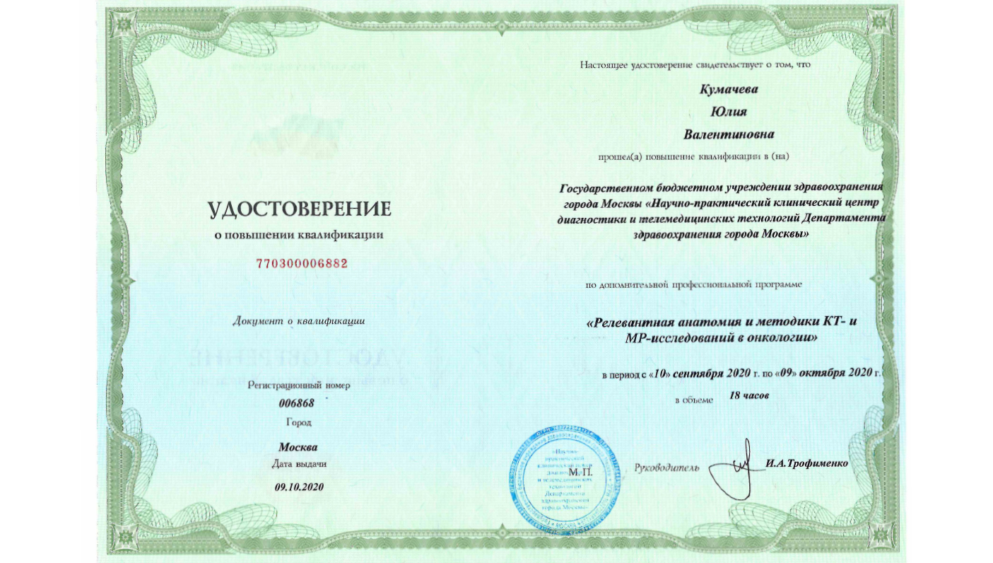 "Релевантная анатомия и методики КТ- и МРТ-исследований в онкологии", 18 час.