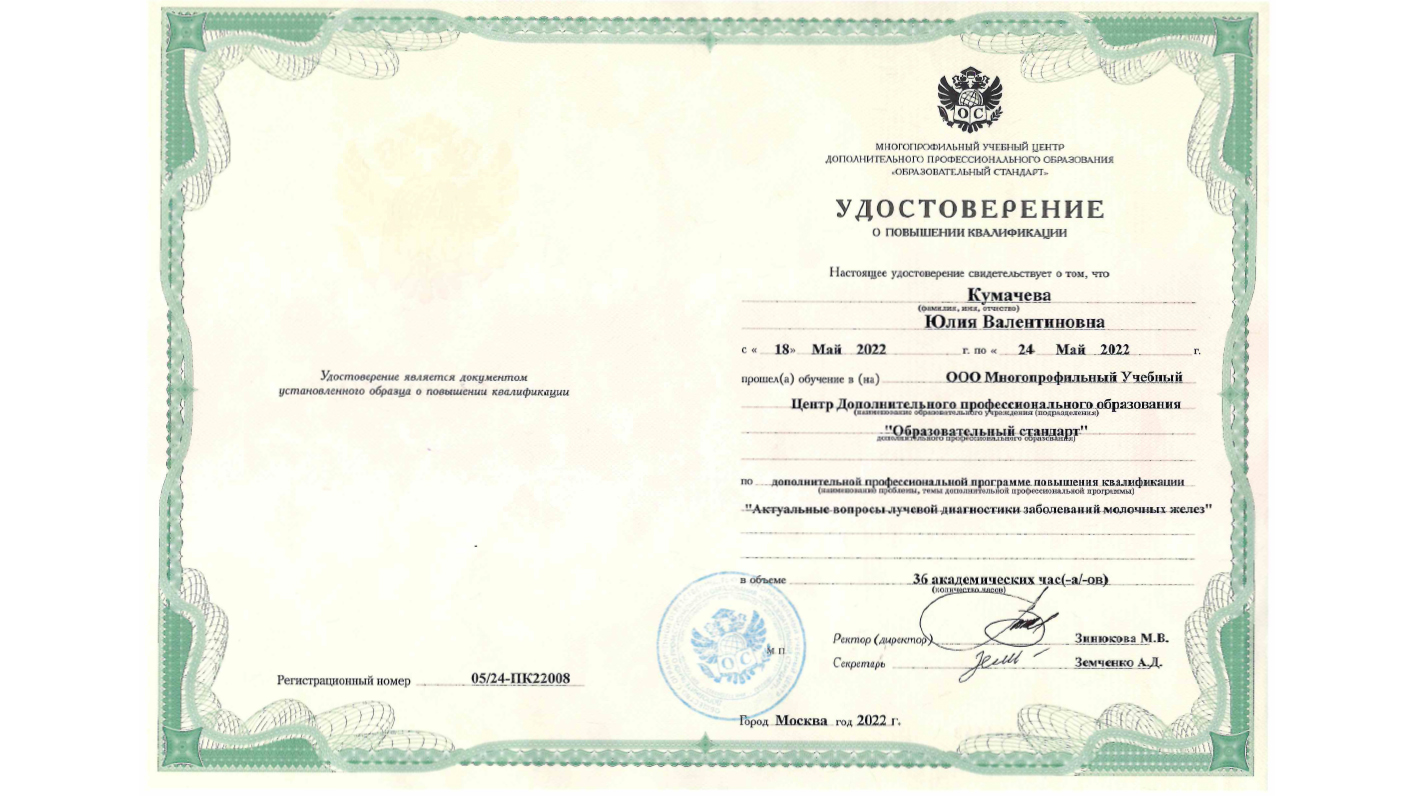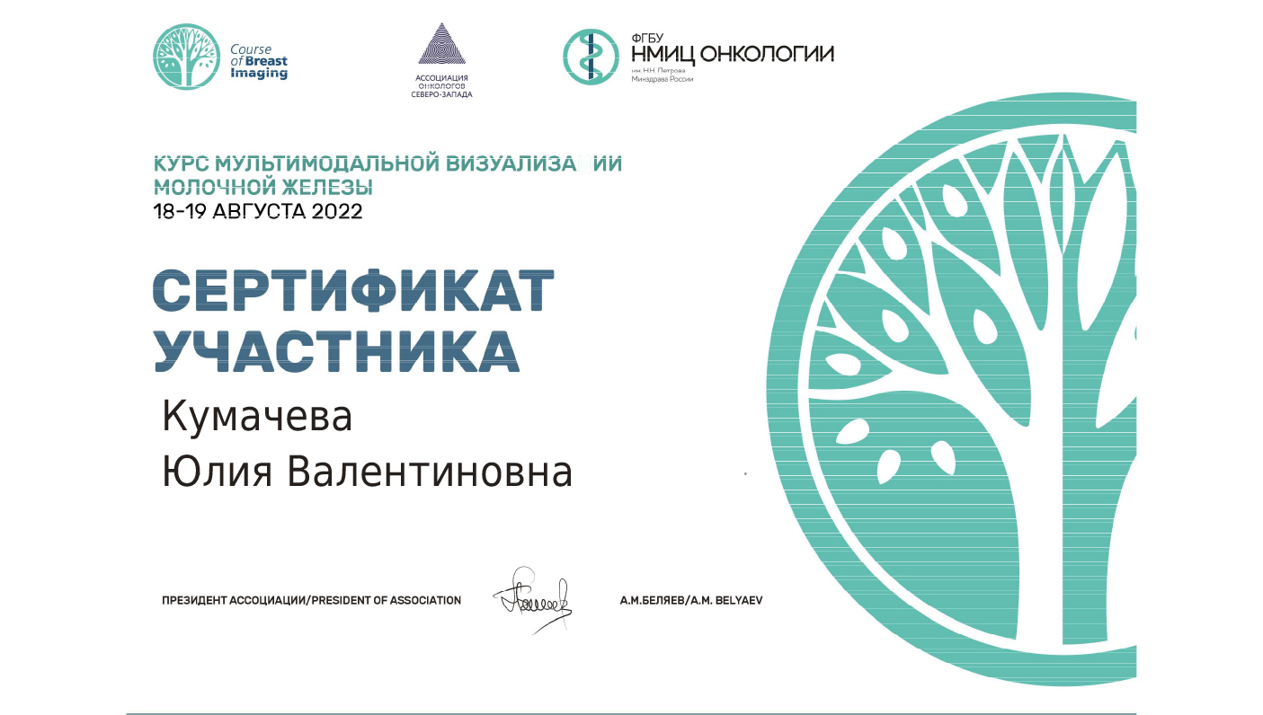 Прошла курс мультимодальной визуализации молочной железы при ФГБУ НМИЦ Онкологии