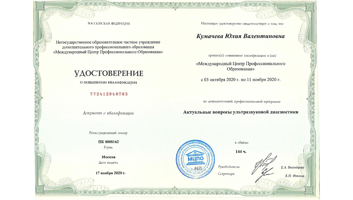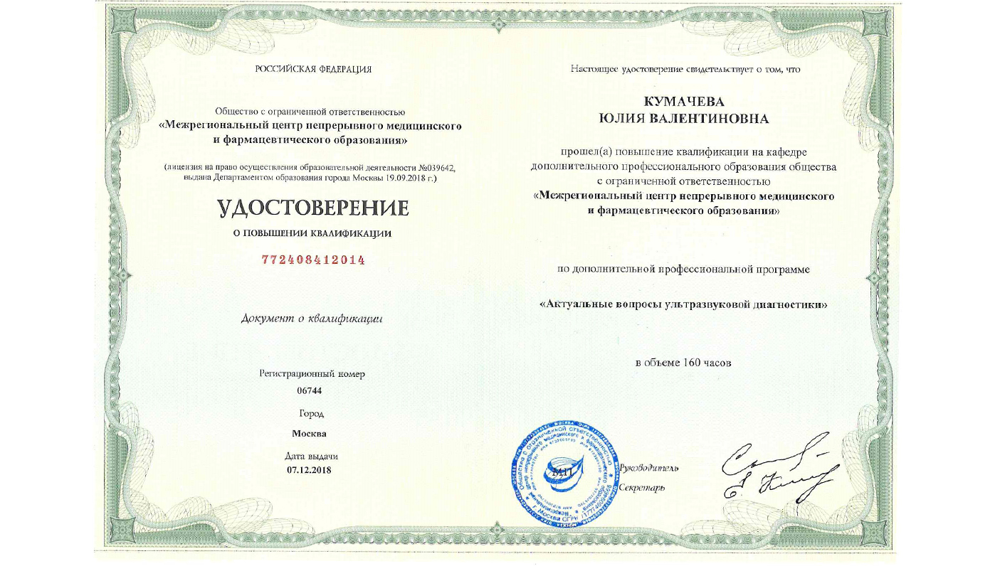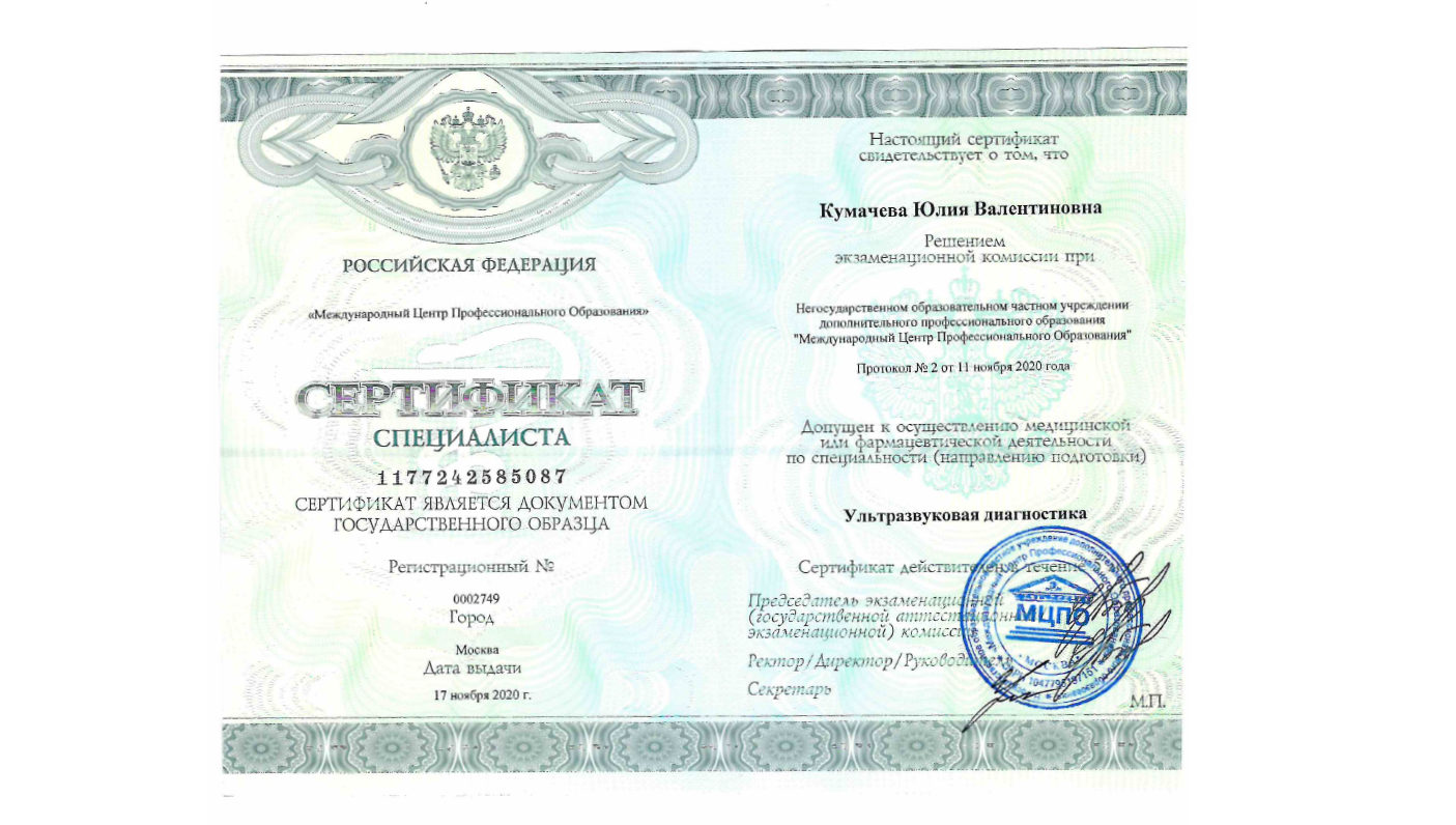 Аккредитована по специальности: ультразвуковая диагностика до 22.09.2030 г.