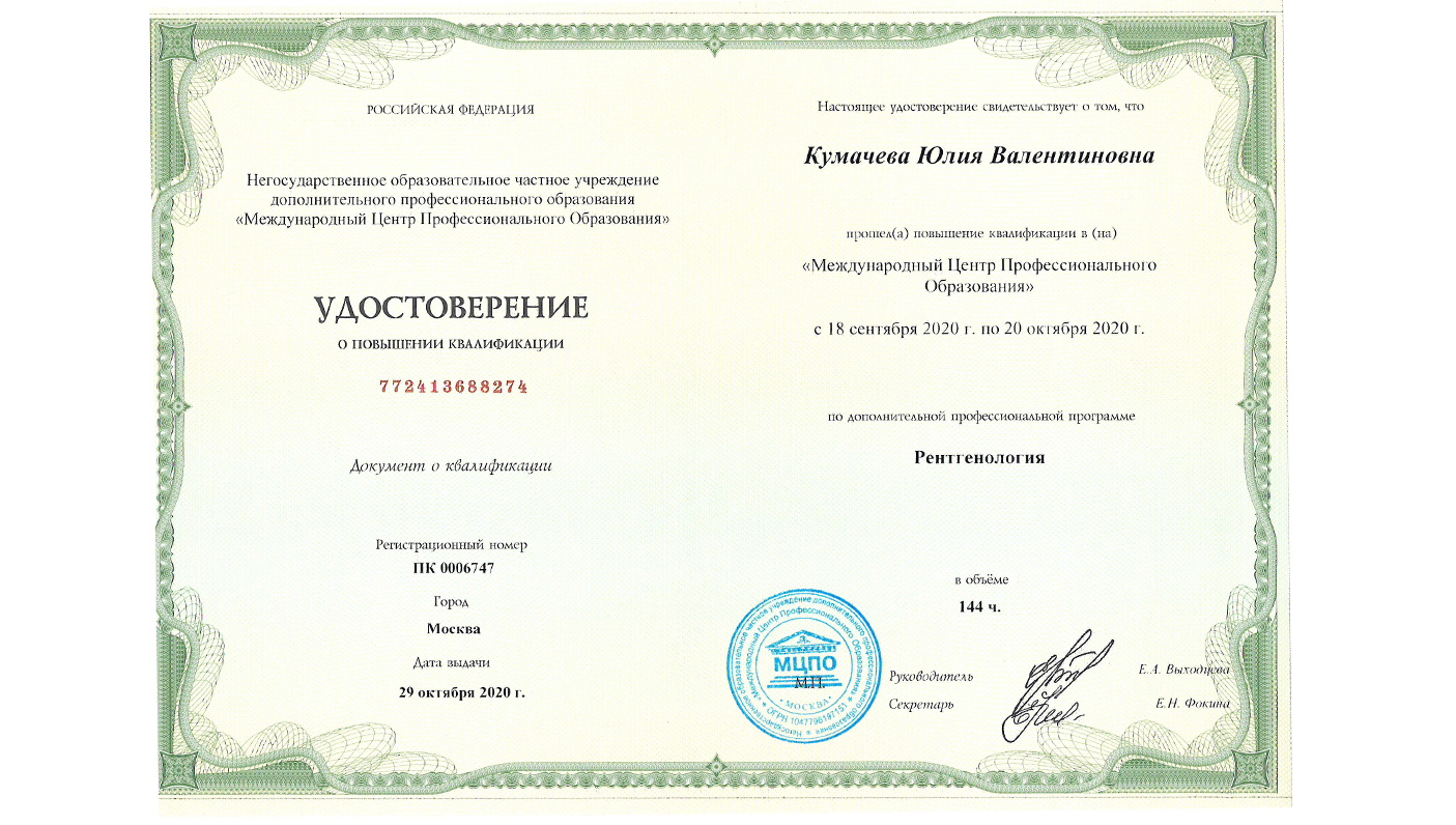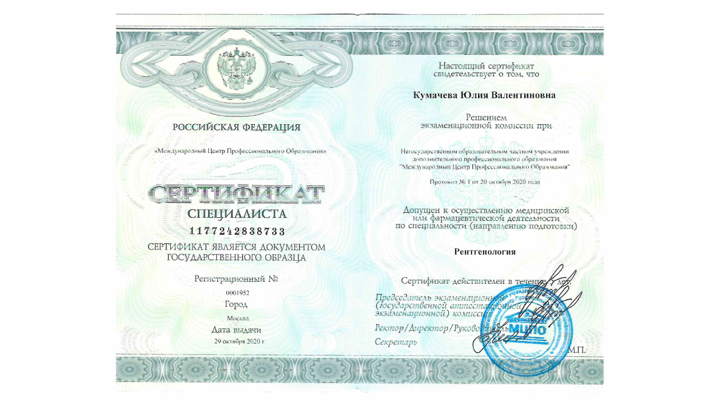 Аккредитованный врач-рентгенолог, врач ультразвуковой диагностики