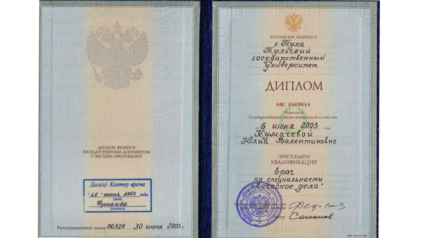 2004 г. - врач-рентгенолог "Тульский областной онкологический диспансер"