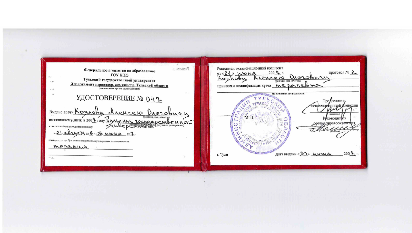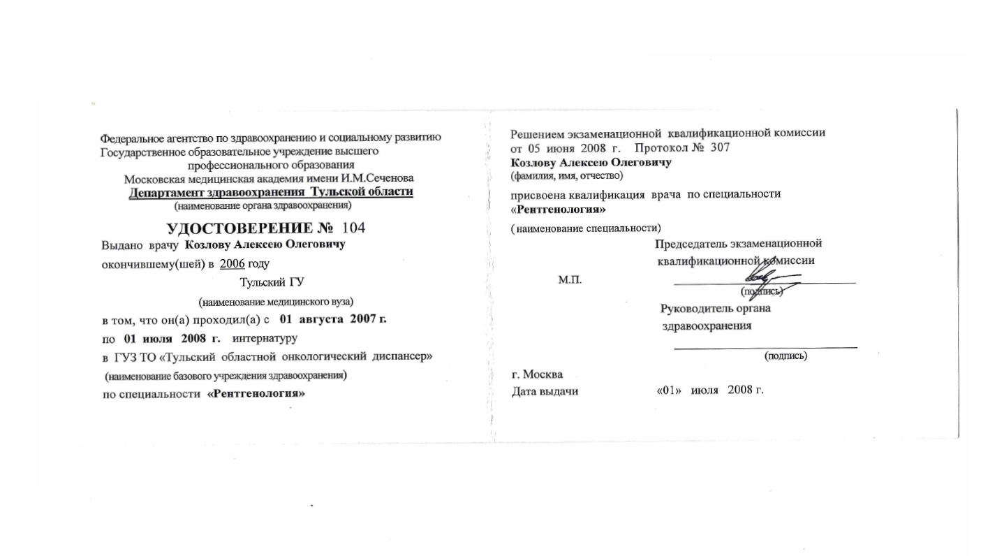 Специальность: лечебное дело 2007 г.