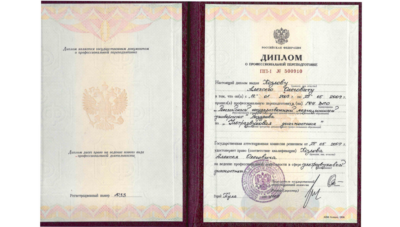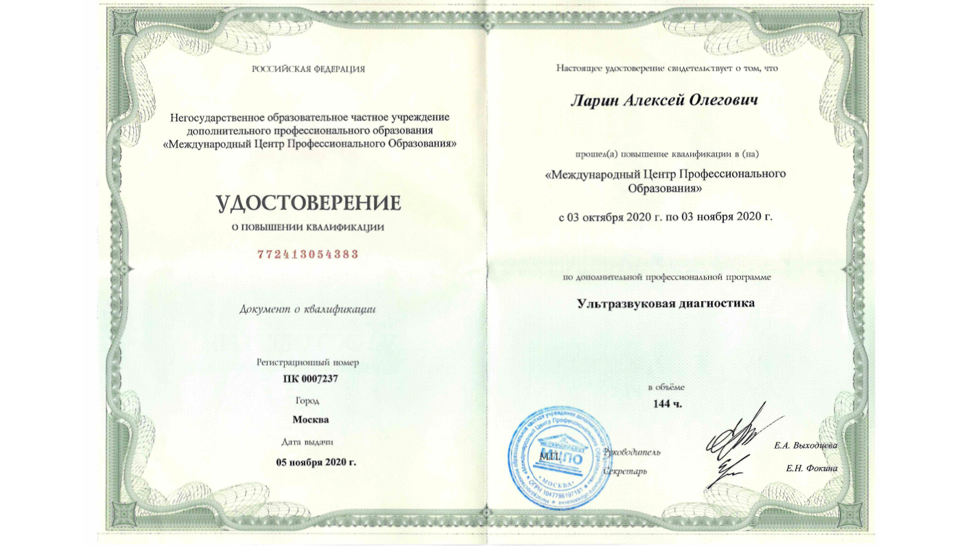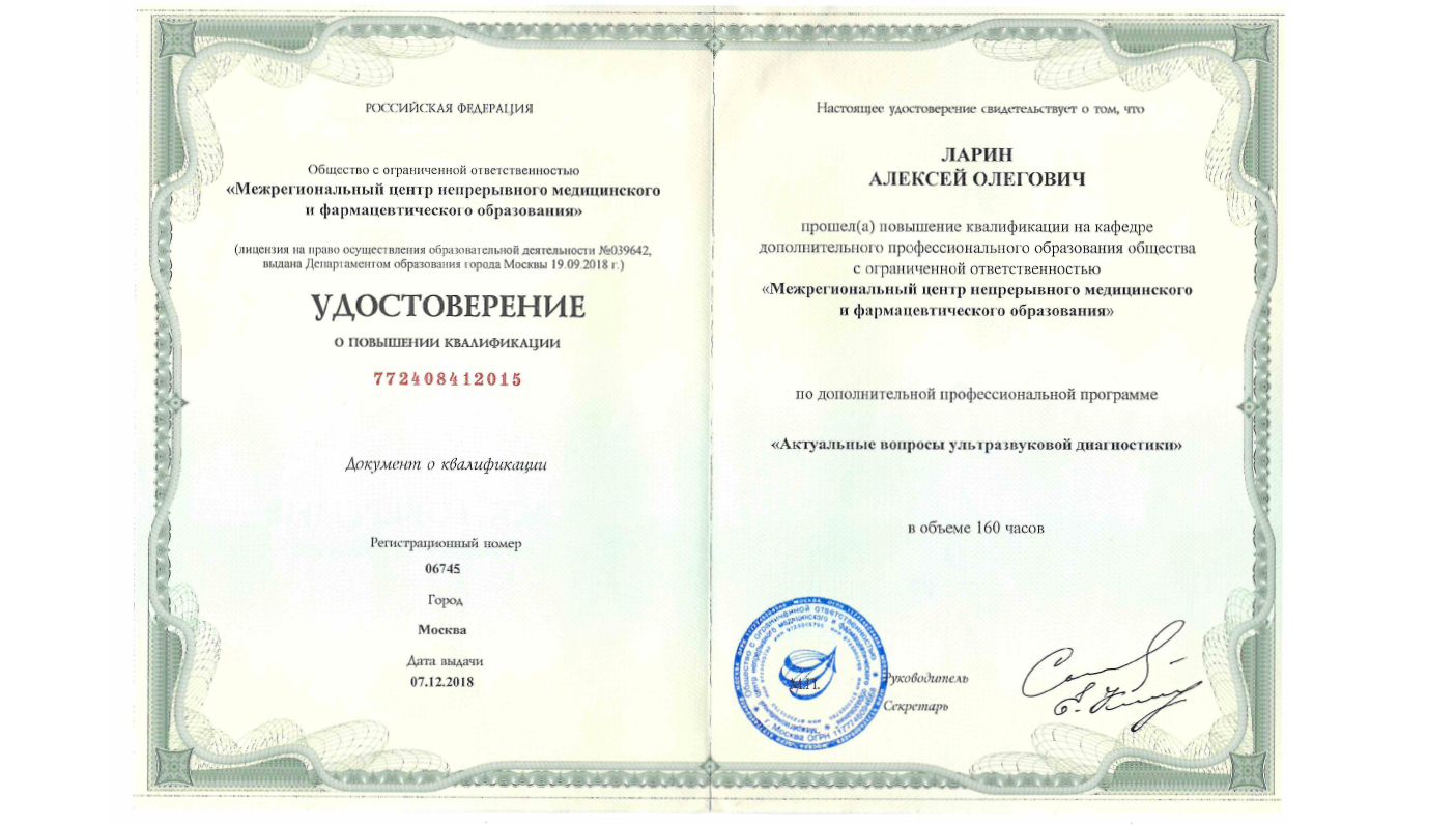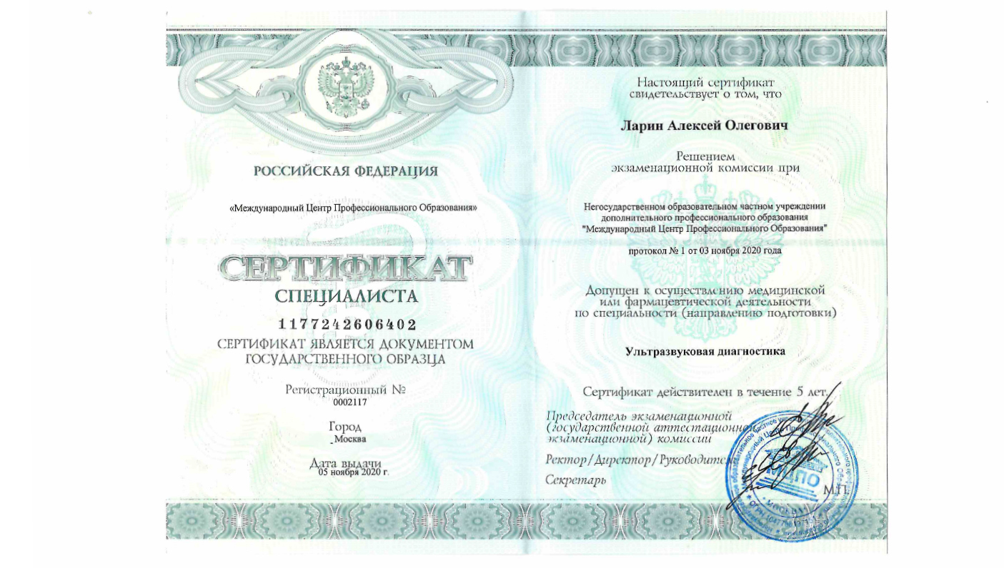 Аккредитован по специальности: ультразвуковая диагностика до 22.09.2030 г.