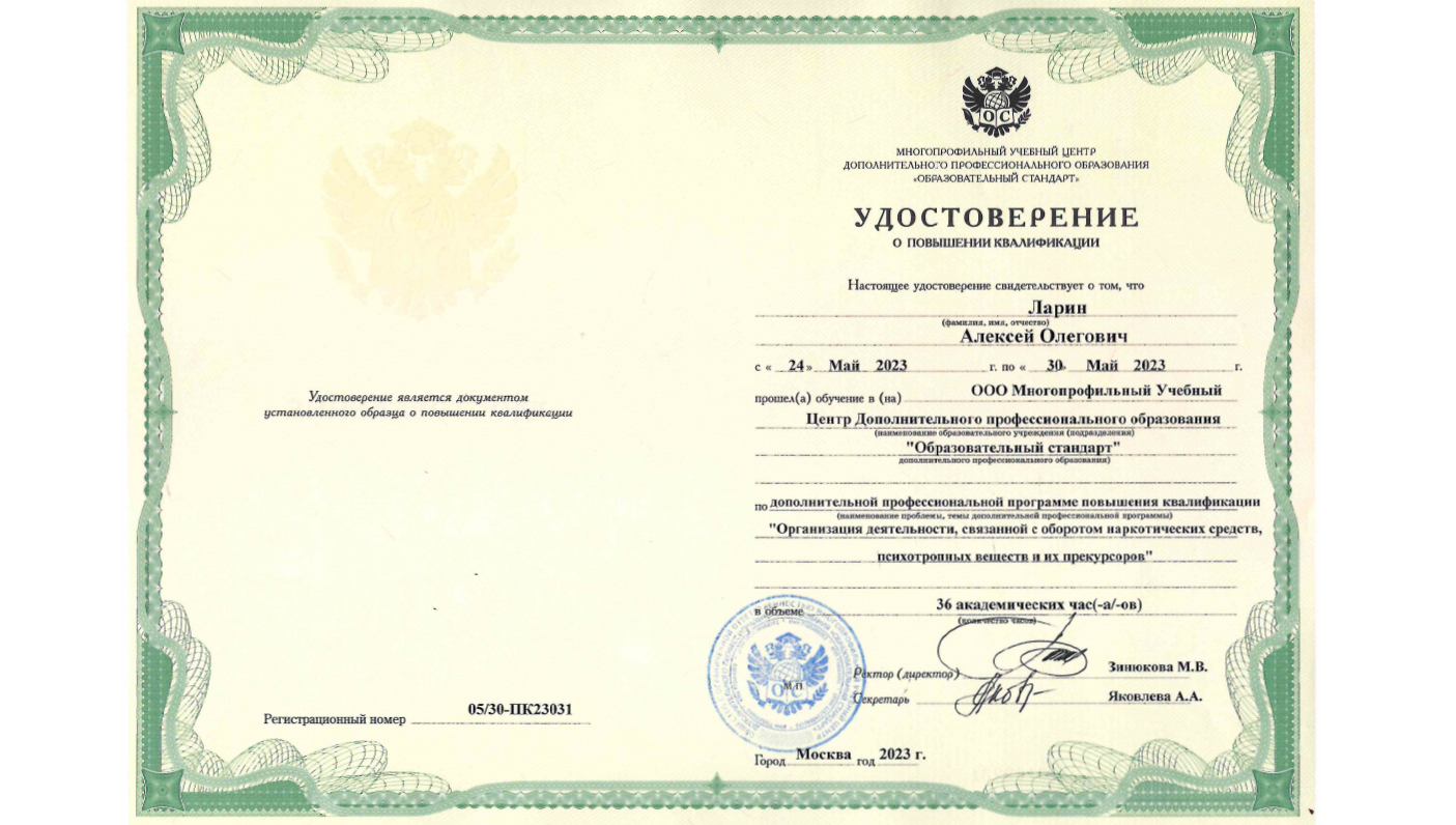 "Организация деятельности, связанной с оборотом наркотических средств, психотропных веществ и их прекурсоров", 36 час. 2022 г.