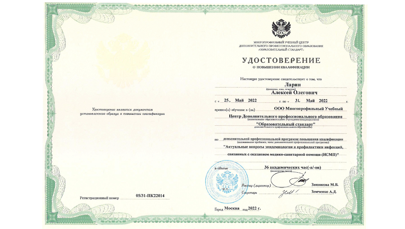 "Актуальные вопросы эпидемиологии и профилактики инфекций, связанных с оказанием медико-санитарной помощи (ИСМП)", 36 час. 2022 г.