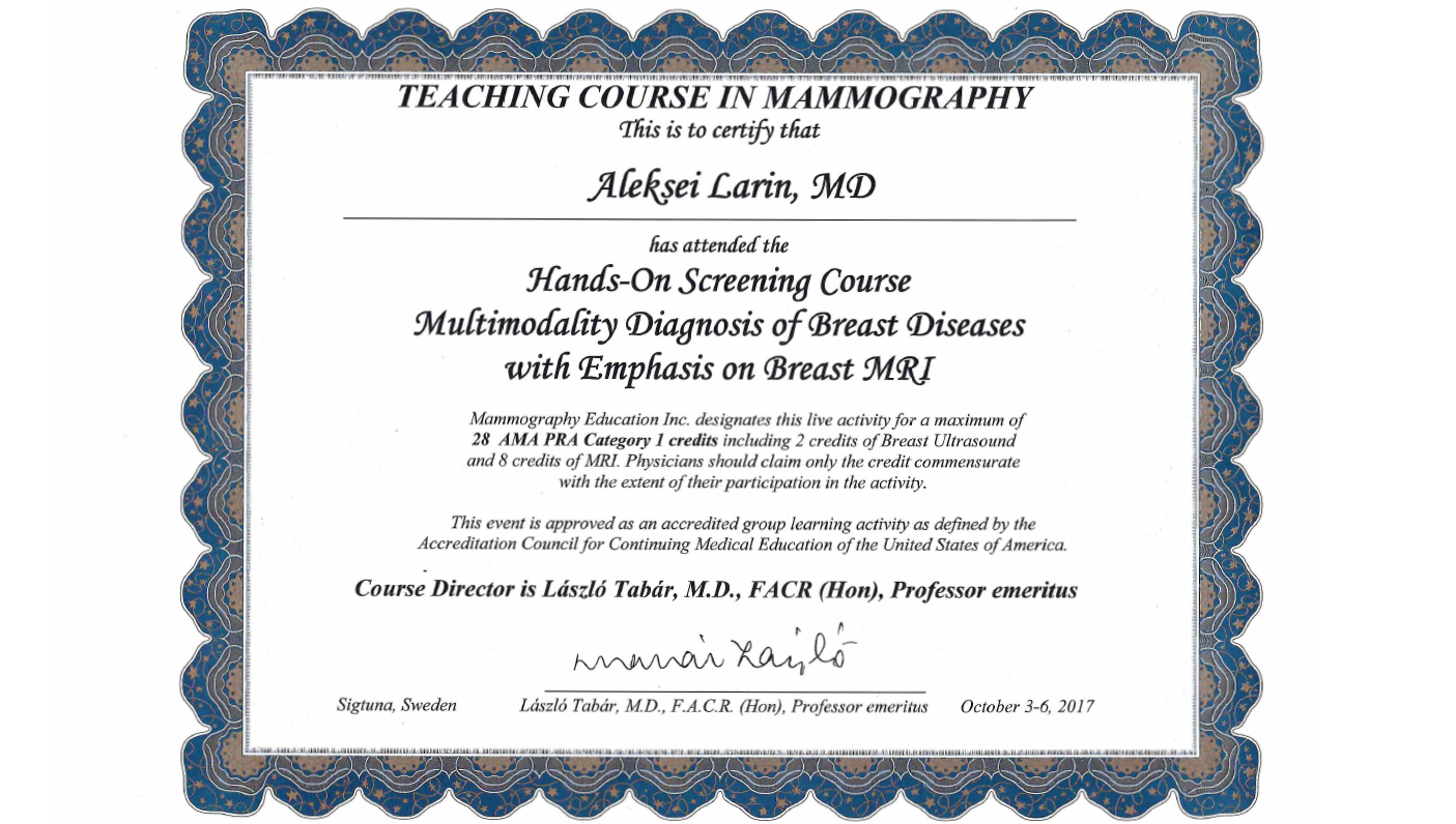 профессора László Tabár, M.D., F.A.C.R (Швеция) 2016 г.