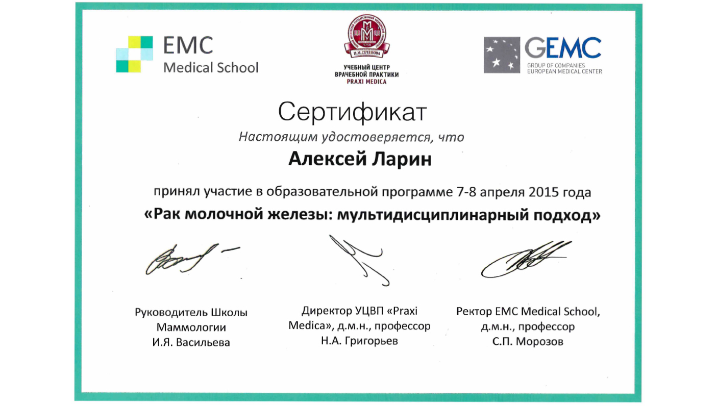 Принял участие в образовательной программе "Рак молочной железы: мультидисциплинарный подход"