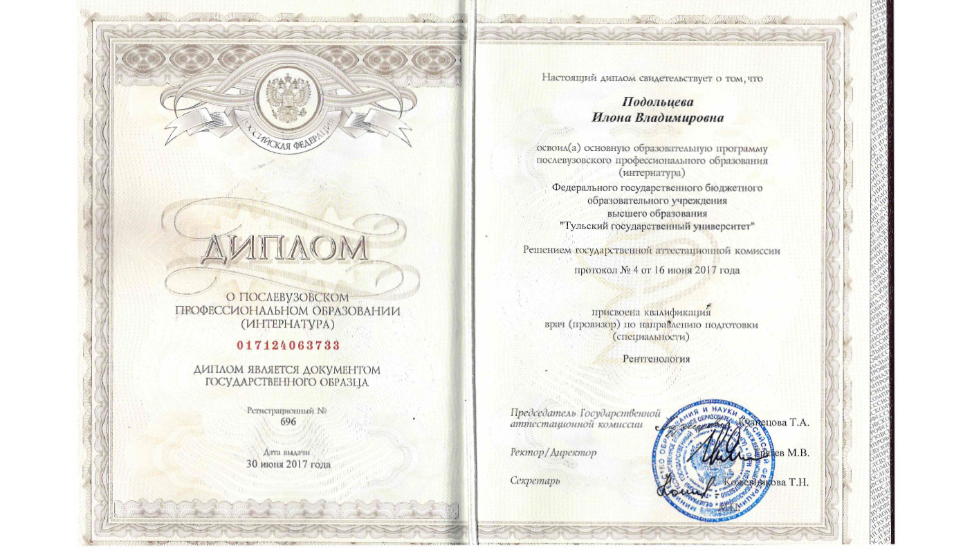 2017 г. - врач-рентгенолог, ГУЗ "Щекинская районная больница"
