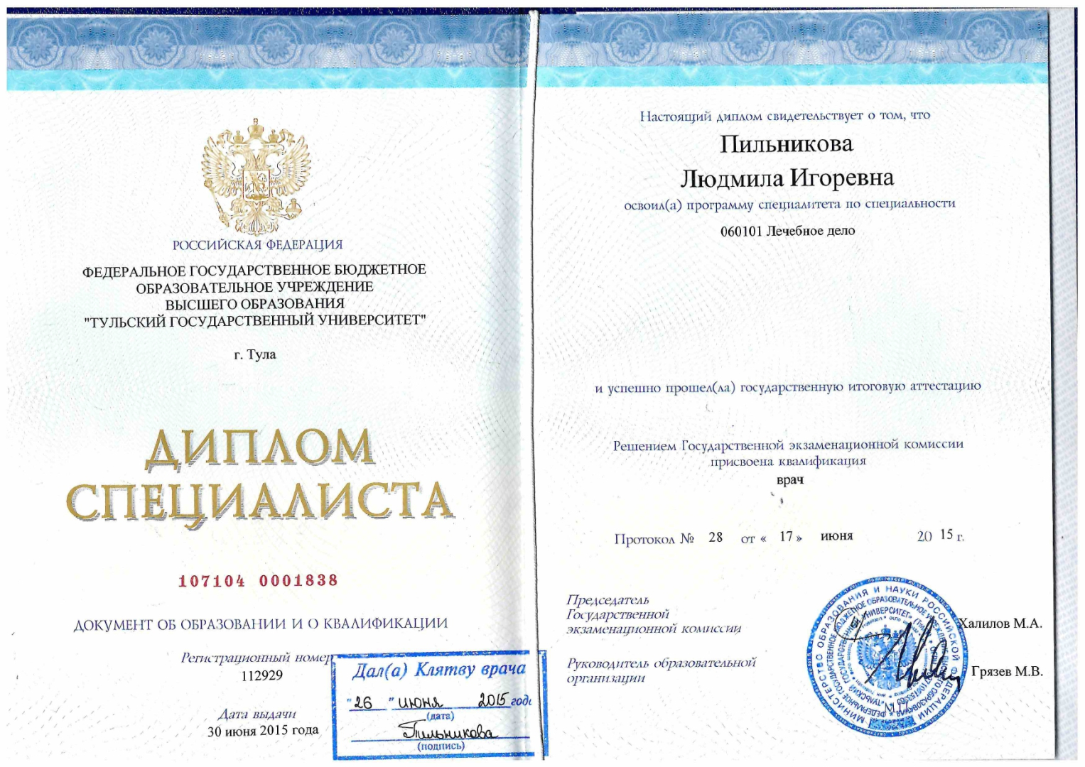 Специальность: лечебное дело