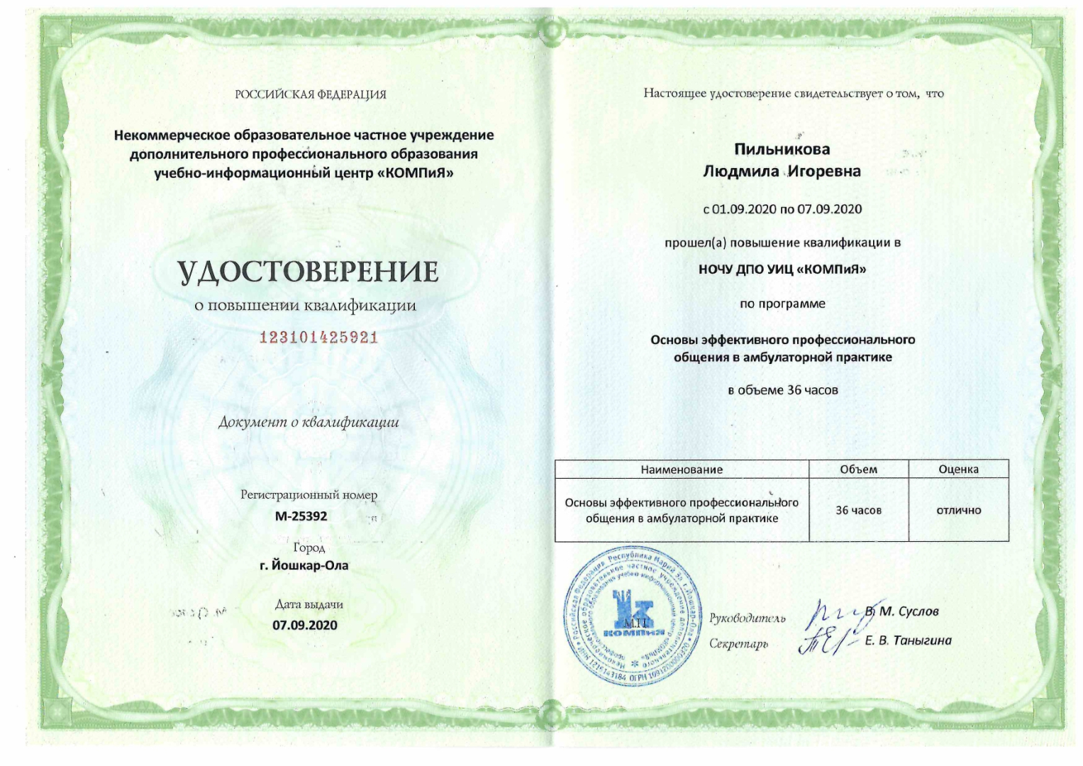 НО ЧУ ДПО учебно-информационный центр "КОМПиЯ" "Основы эффективного профессионального общения в амбулаторной практике", 36 час.