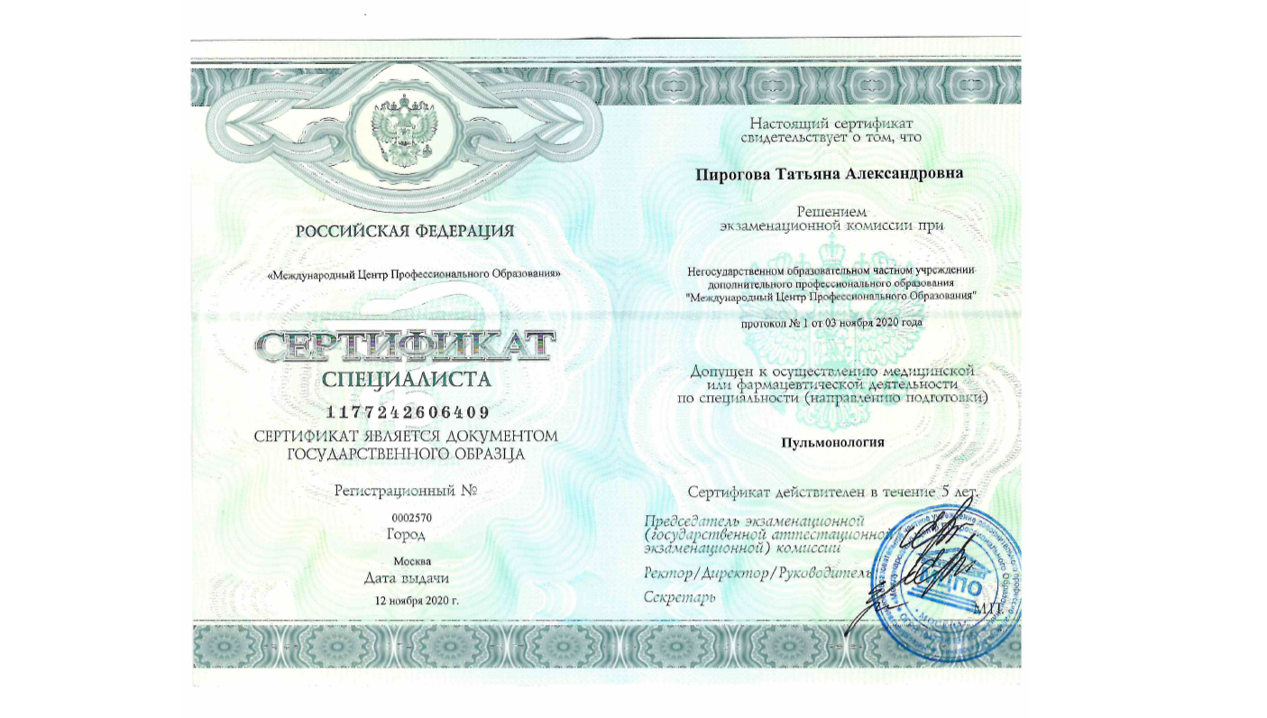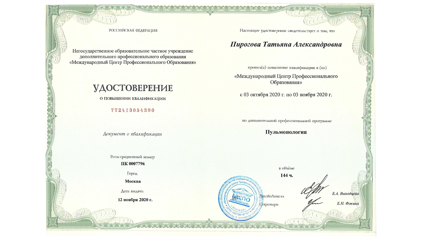 2020 г. - врач-пульмонолог МЦ "Консультант"