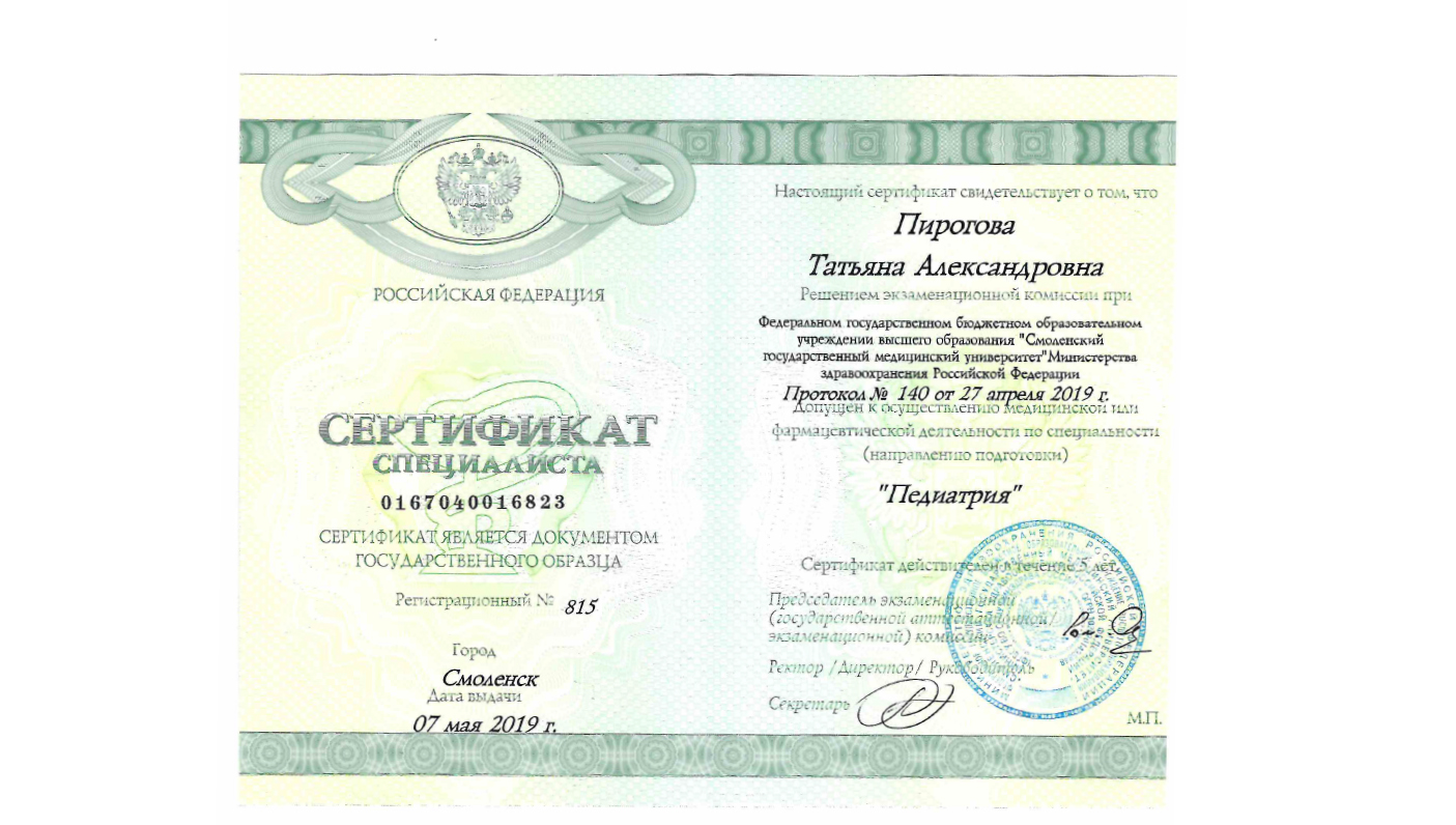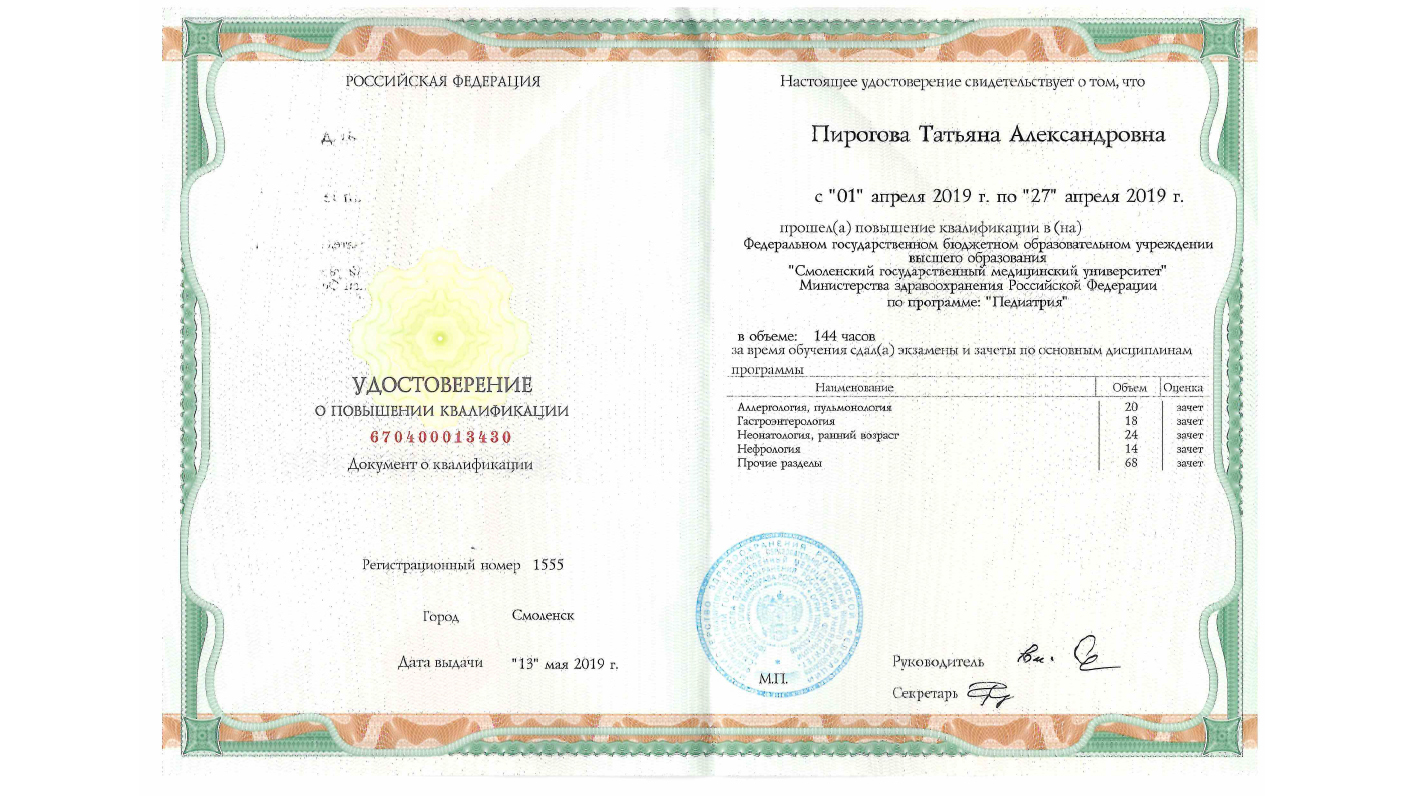 Аккредитована по специальности: педиатрия до 21.05.2029