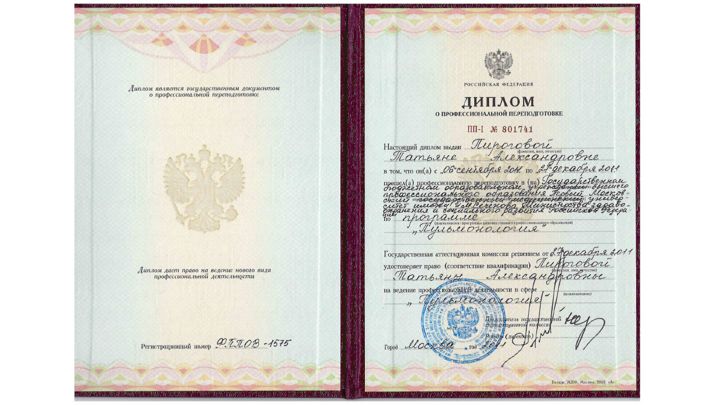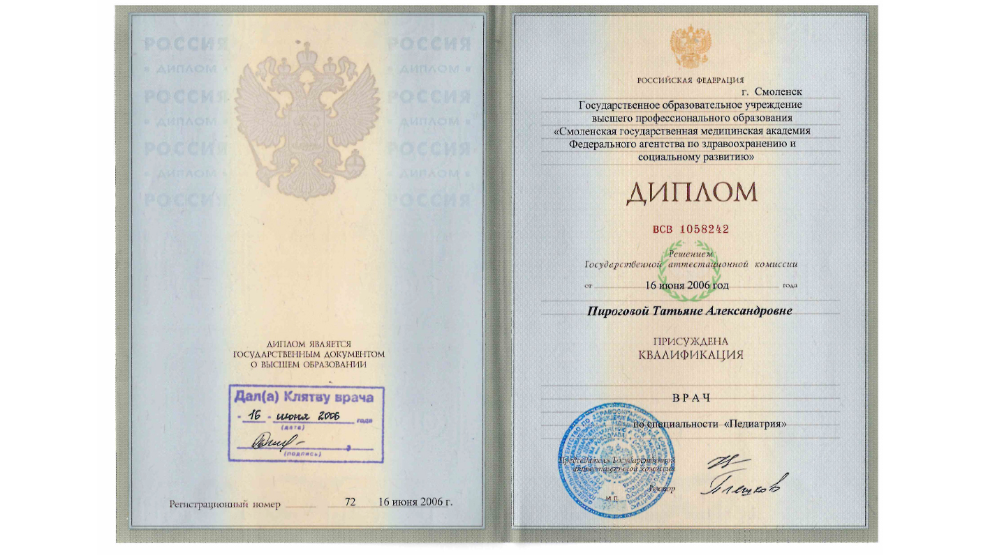 2006 г. - врач-интерн по педиатрии ГУЗ "Тульская детская областная клиническая больница"