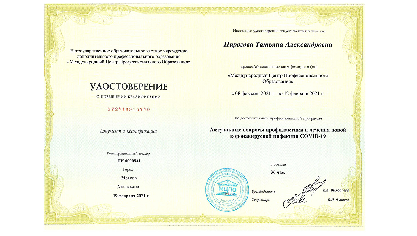 "Актуальные вопросы профилактики и лечения новой коронавирусной инфекции COVID-19", 36 час.