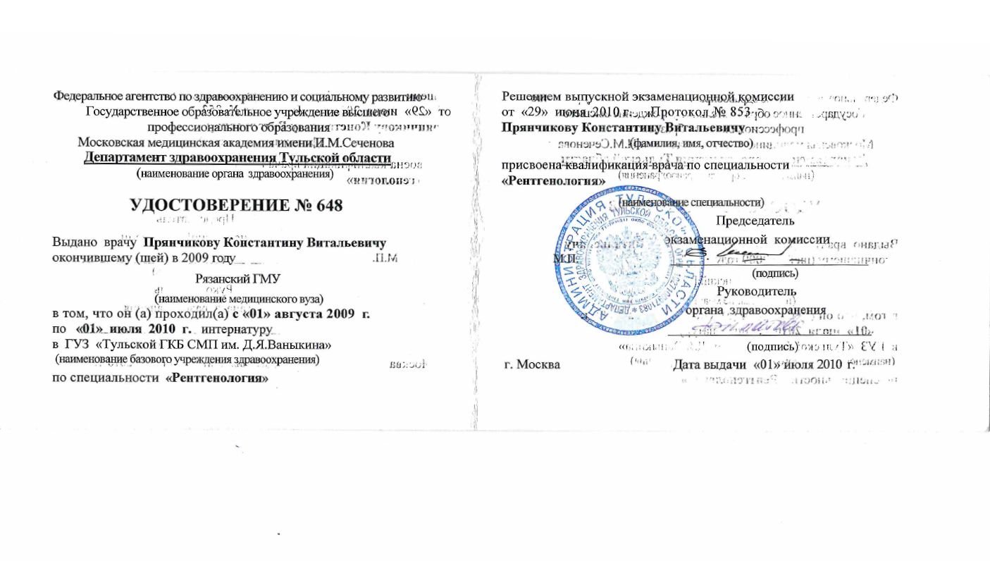 2010 г. - врач-рентгенолог ГУЗ "Тульская городская клиническая больница им. Д.Я. Ваныкина"