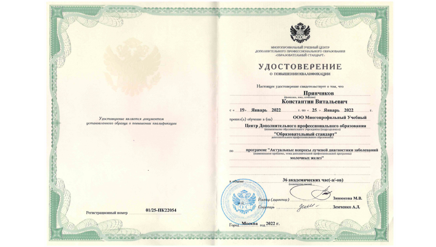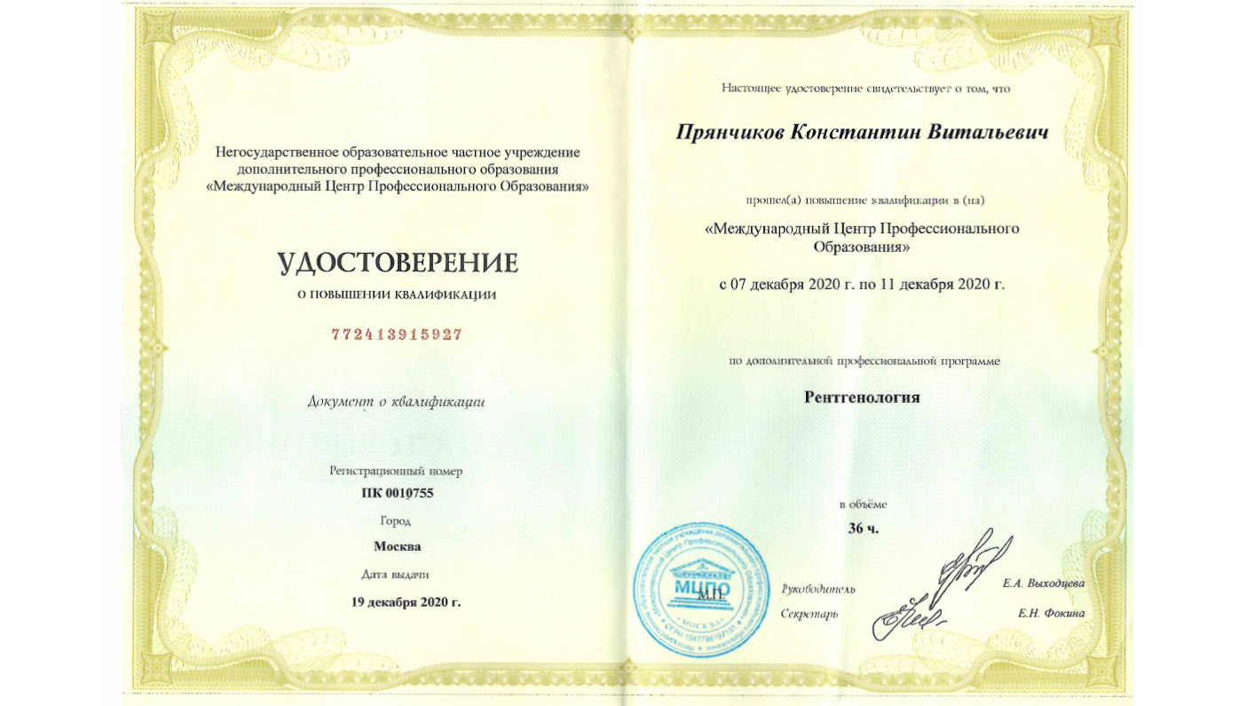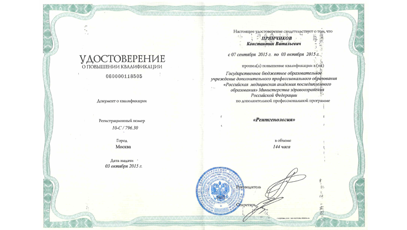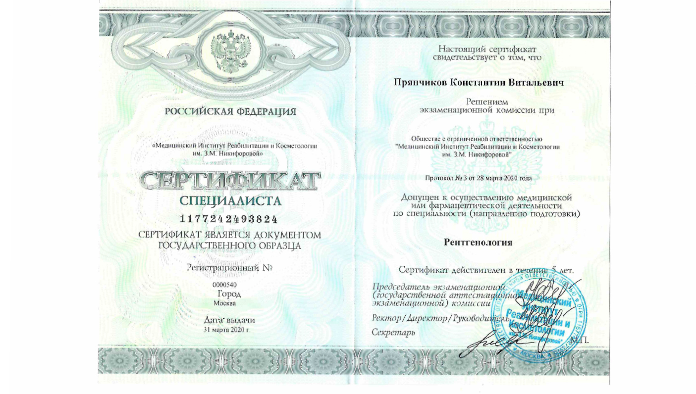 Аккредитован по специальности: рентгенология до 29.09.2029