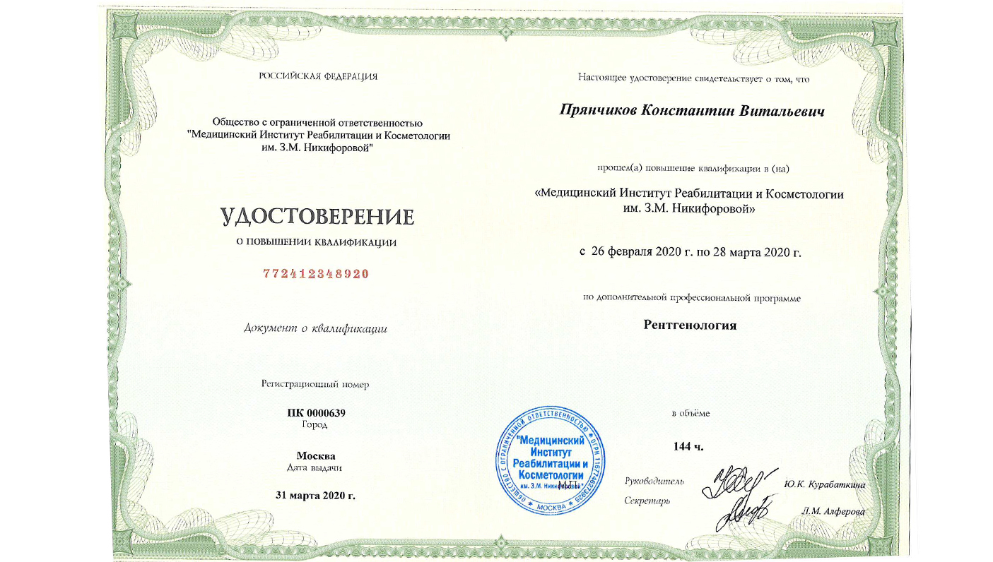 2017 г. - врач-рентгенолог отделения лучевой диагностики поликлиники МЦ "Консультант"