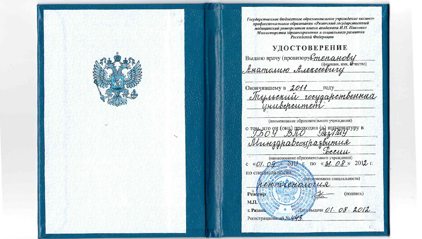2012 г.  - врач-рентгенолог "Тульский областной онкологический диспансер"