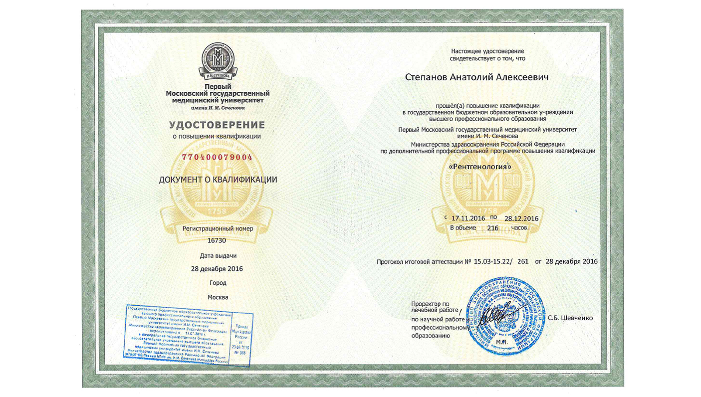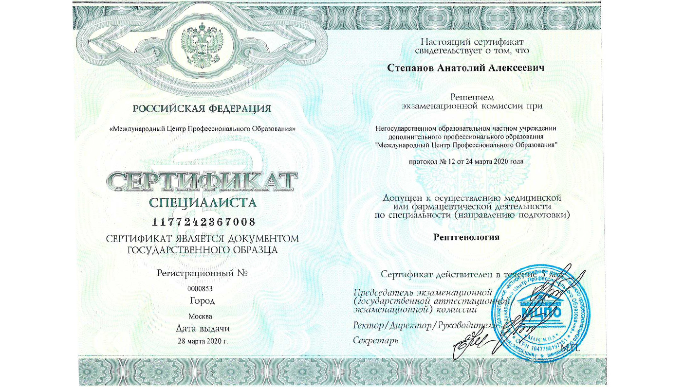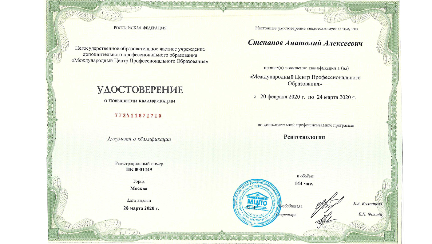 Аккредитован по специальности: рентгенология до 26.08.2029